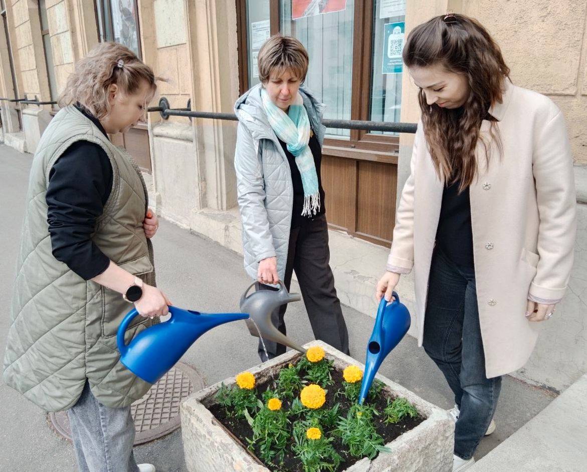 В завершение акции «Зелёная Удельная» мы посадили цветы и оформили клумбы на территории у библиотеки!