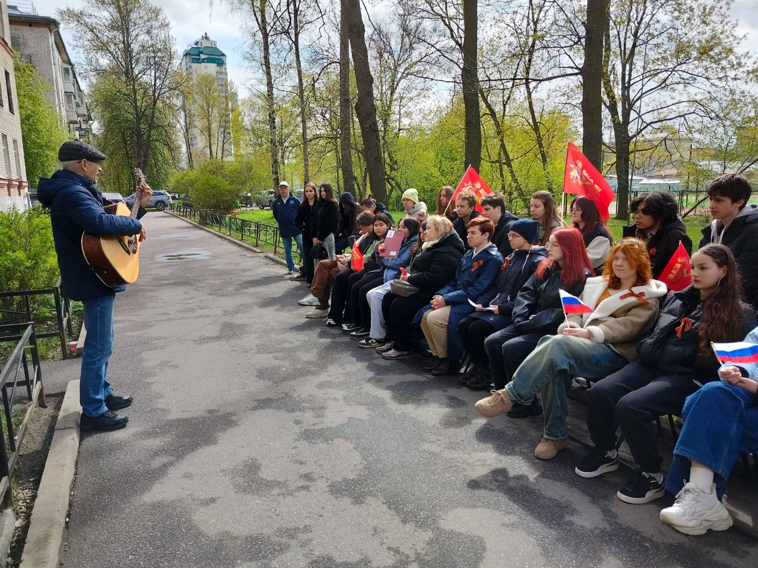 – Прозвучали стихи и песни, посвящённые дням войны и блокады Ленинграда, в исполнении Алексея Николаевича Носова, поэта, члена Союза писателей Петербурга и автора-исполнителя.