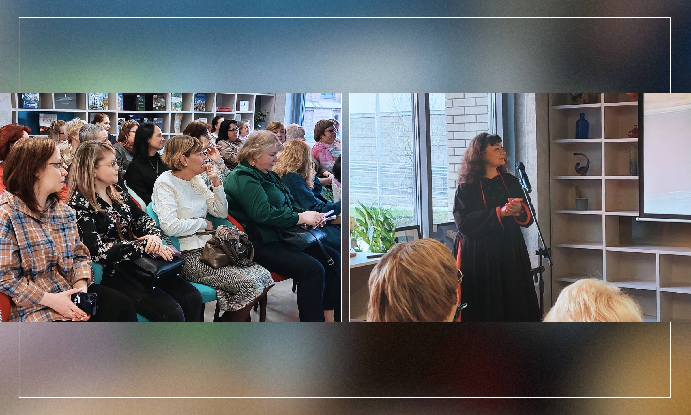 — Раиса Николаевна Панкова, директор ЦБС Выборгского района, рассказала о пути открытия новой библиотеки – от зарождения концепции до её воплощения. Коллеги из Ленинградской области погрузились в историю пространства – кондитерской фабрики Георга Ландрина, на месте которой находится Библиотека «АЗАРТ».